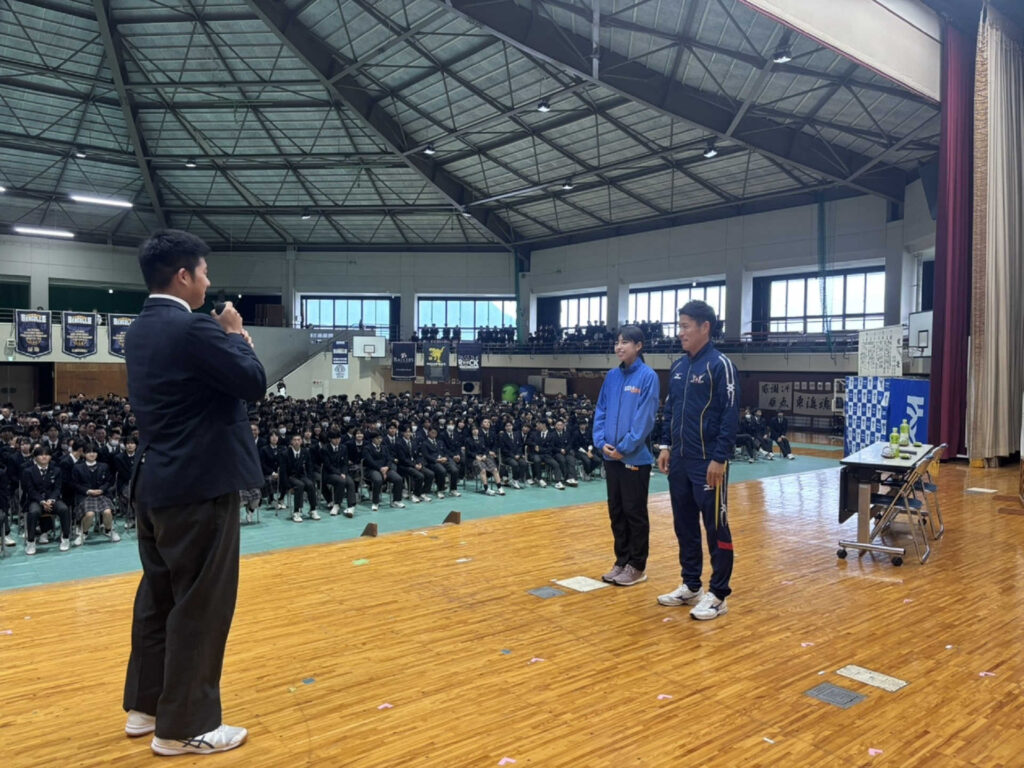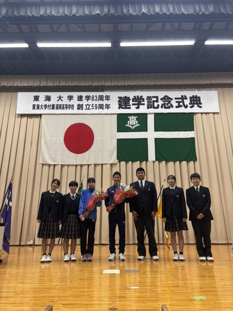 藤井菜々子選手が東海大学付属福岡高等学校の建学記念講演会に登壇! New お知らせ 2025.11.12 2025年10月31日(金)東海大学付属福岡高等学校の建学記念講演会に、藤井菜々子選手が登壇しました。同じく福岡県出身で競歩をしている勝木隼人選手(自衛隊体育学校)も一緒に登壇し、学生たちからの色々な質問に答えました。最後は生徒から「競歩が見たいです!」という声が上がり、競歩競争で締めくくる、という楽しい場面もありました。 2025.11.12