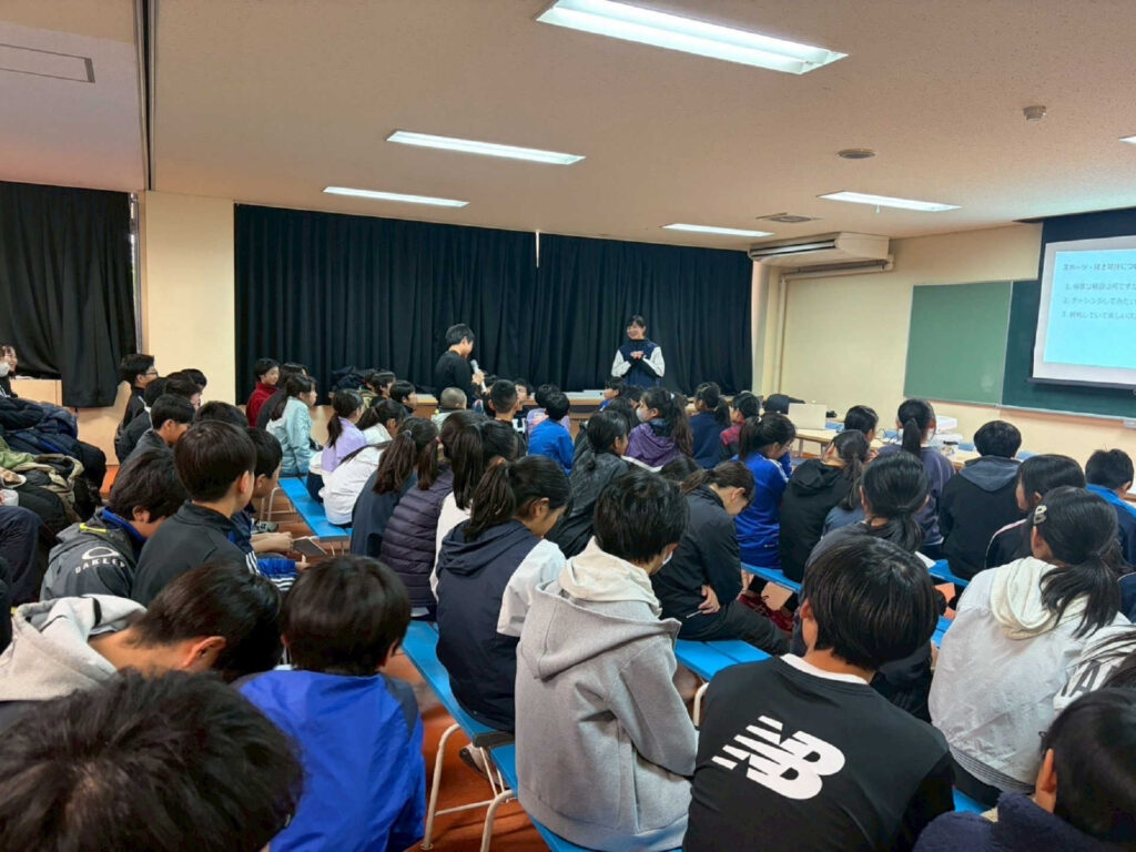 午後は、小学生や指導者、保護者の方々を対象とした講習会を実施しました。ジュニア期における育成方法や怪我の予防、適切なシューズ選びについてお話をさせていただき、子どもたちからも活発な発言がみられ、大変有意義な時間となりました。